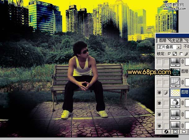 10、把剛才隱藏的圖層顯示出來,圖層混合模式改為“正片疊底”,效果如圖19。