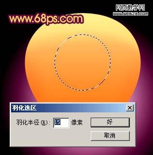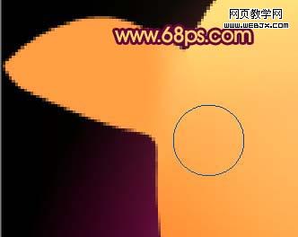 3、新建一個圖層,用橢圓選框工具拉出圖6所示的選區,按ctrl + alt + d 羽化,數值為15,然后填充顏色:#ffcc78,確定后取消選區,加上圖層蒙版,用黑色畫筆稍微把下部分涂掉,效果如圖7。