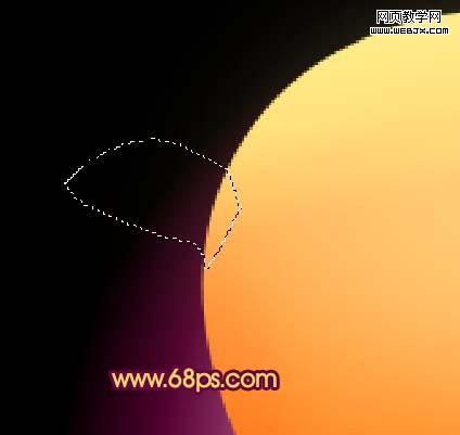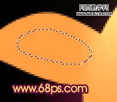6、新建一個圖層,用鋼筆工具勾出圖11所示的選區,按ctrl + alt + d 羽化2個像素,填充顏色:#f4691f,取消選區后效果如圖12。