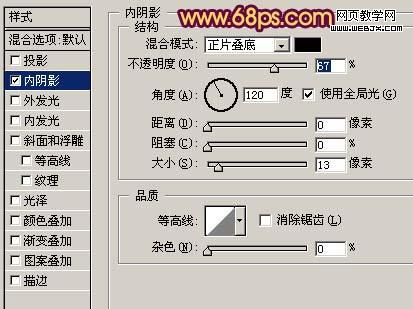11、新建一個圖層,用鋼筆工具勾出牛角路徑,轉為選區后填充白色。取消選區后,雙擊圖層調出圖層樣式,填充內陰影,參數設置如圖18,效果如圖19。