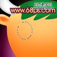 19、新建一個圖層,用橢圓選框工具在鼻子上面拉一個橢圓選區,羽化5個像素后填充深一點的粉紅色,效果如圖30。