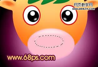 17、新建一個圖層,用橢圓選框工具拉一個橢圓作為牛的嘴巴,然后填充粉紅色,效果如圖27。