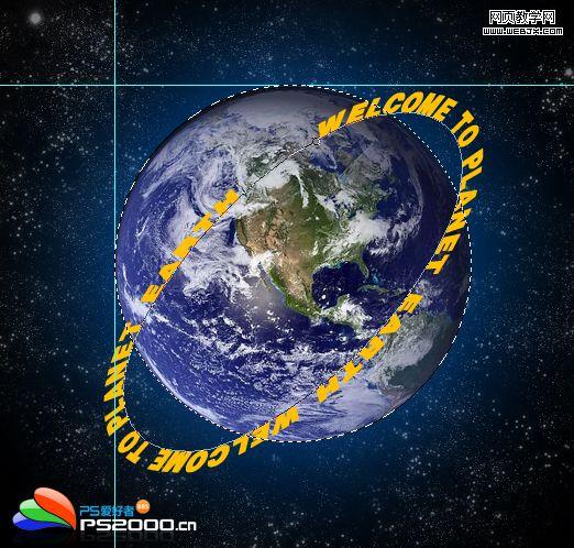 6、使用橢圓選區(qū)工具,按住shift自輔助線交叉點處繪制地球的圓形選區(qū)