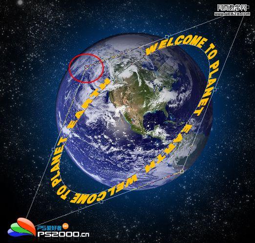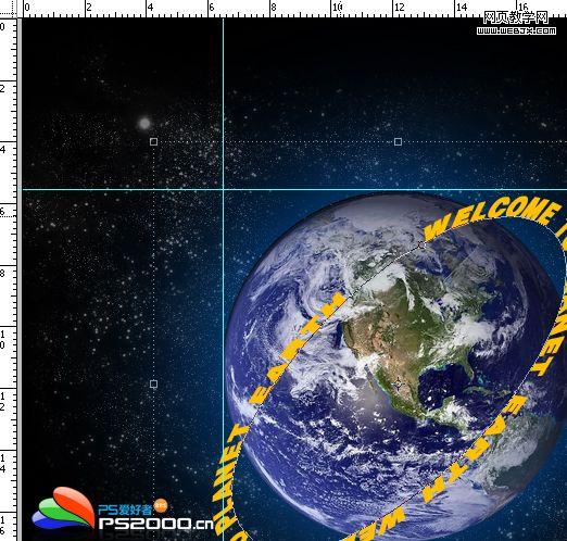 5、ctrl+r打開標尺,從上側和左側標尺拖出輔助線(輔助線緊靠地球的邊緣)