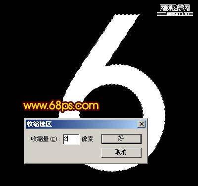 3、按ctrl點圖層面板文字圖層縮略圖調出文字選區,新建一個圖層填充白色,填充后不要取消選區,執行:選擇 > 修改 > 收縮,數值為2,如圖4,確定后按delete 刪除,效果如圖5。