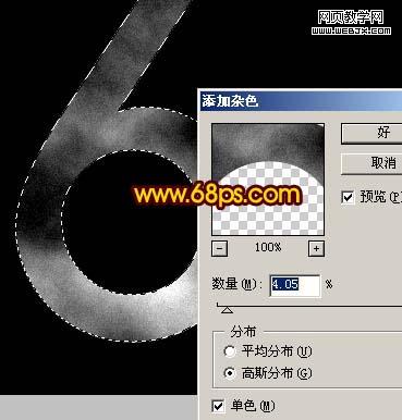 5、調出文字選區,再最上面新建一個圖層,把前背景顏色恢復到默認的黑白,然后執行:濾鏡 > 渲染 > 云彩,確定后按ctrl + alt + f 加強一下,效果如圖7,保持選區,再執行:濾鏡 > 雜色 > 添加雜色,參數設置如圖8,確定后把圖層混合模式改為“強光”,效果如圖9。