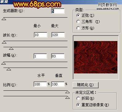 7、對紋理再執行:濾鏡 > 扭曲 > 波浪,參數設置如圖11。