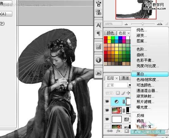 6、新建個"黑白"調整層,把全圖顏色變為黑白。