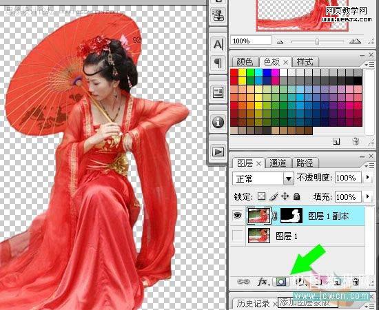 選取后,點擊"添加圖層蒙版",把沒選取的部分用蒙版隱藏起來。