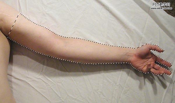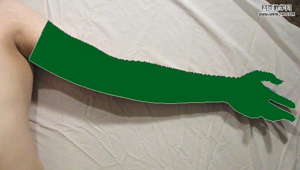 然后使用鋼筆工具,圍繞胳膊繪制一個(gè)區(qū)域,為了我們切割做準(zhǔn)備,效果如下。