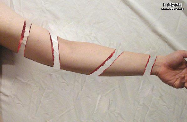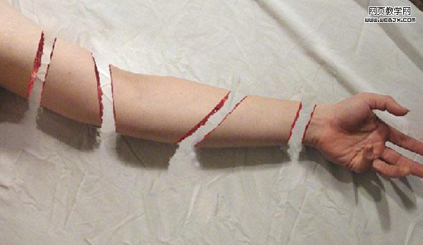 本photoshop教程主要教你制作一個(gè)非常恐怖的特效:割斷的手臂,主要是工具的實(shí)用和蒙板圖層的使用,借助一些素材達(dá)到最終的效果,本文來(lái)源國(guó)外網(wǎng)站,原作者為simon rudd,網(wǎng)頁(yè)設(shè)計(jì)翻譯此文,最終效果如下。