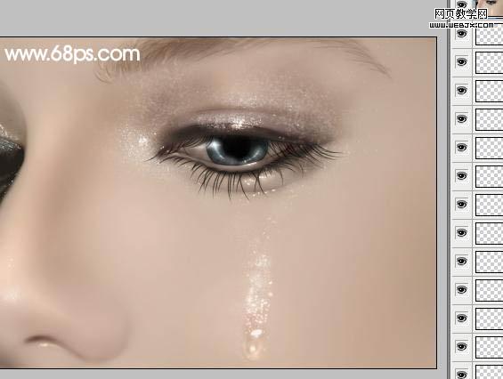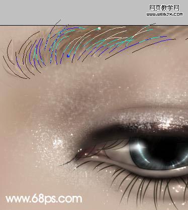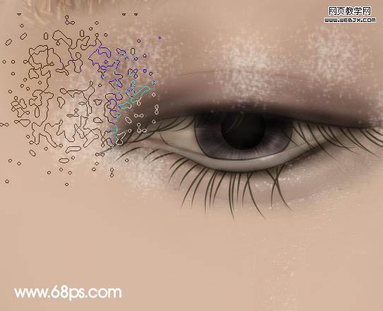 11、選擇畫筆工具,再選擇一款顆粒筆刷,在眼睛上畫出高光亮粉,加上圖層蒙版用黑色畫筆擦掉多余亮點。