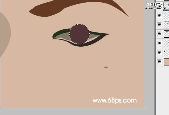 3、繪制眼珠,新建一個圖層用橢圓選框工具,按住ctrl 畫一個小的正圓,然后填充暗褐色。