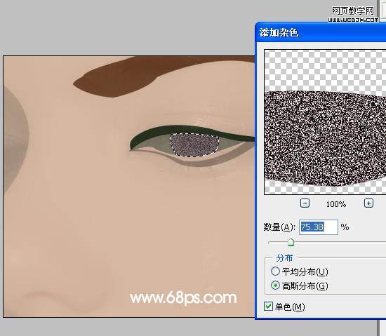 6、回到眼珠圖層,執行:濾鏡 > 雜色 > 添加雜色,參數設置如下圖。