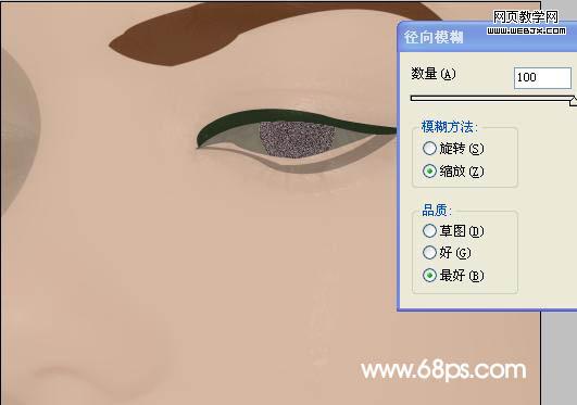 7、執行:濾鏡 > 模糊 > 徑向模糊,參數設置如下圖。