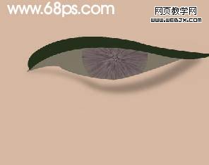 1、建立背景圖層,填充淡黃色,新建一個圖層,用鋼筆工具勾出眼睛的輪廓,轉為選區,按ctrl + alt + d 羽化1個像素,然后填充顏色:#7f7665。