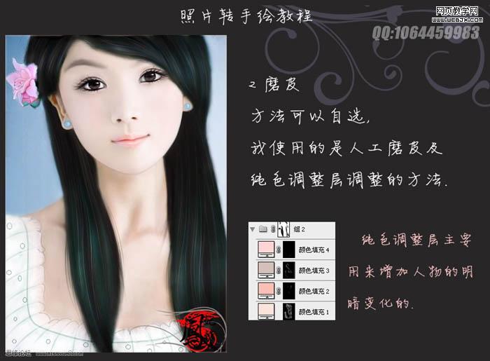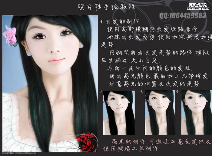 仿手繪的方法大致相同,不過不同的人處理的時候細節的處理方法不太相同。本文的作者在處理的時候特意用濾鏡對人物的臉型進行了處理,效果相當不錯。