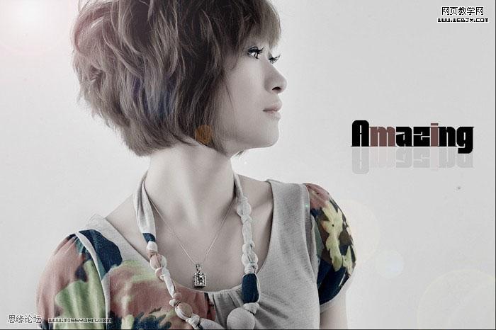 6、新建一個圖層,蓋印圖層,適當的把圖層銳化一下,然后稍微美化一下人物的嘴部。最后加上一些鏡頭光暈,完成最終效果。