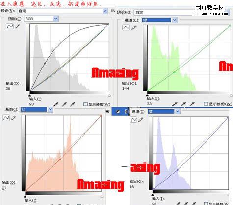 1、打開原圖素材,按ctrl + alt + ~ 調出高光選區,按ctrl + shift + i 反選,然后創建曲線調整圖層,對個通道進行調整,參數及效果如下圖。