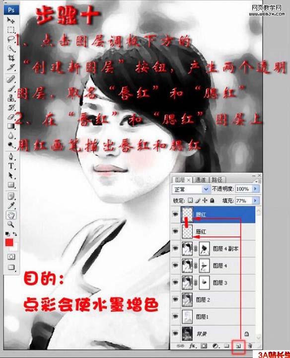10、新建一個(gè)圖層,簡(jiǎn)單的給人物加上口紅及腮紅。