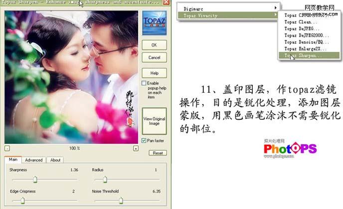 11、新建一個圖層,蓋印圖層用topaz濾鏡操作,目的是銳化處理,添加圖層蒙版,用黑色畫筆涂抹不需要銳化的部位。