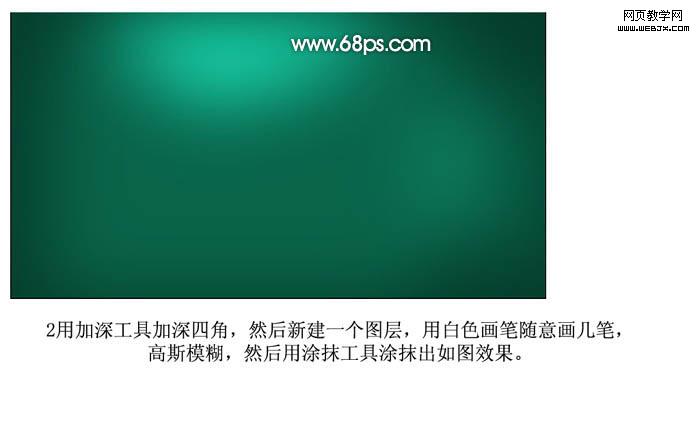 2、用加深工具加深四周,然后新建一個圖層,用白色畫筆隨意畫幾筆,執行:濾鏡 > 模糊 > 高斯模糊,然后用涂抹工具涂抹出如圖效果。