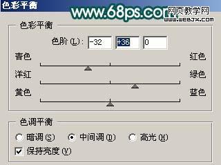 3、保持選區,按ctrl + b 調整色彩平衡,參數設置如圖3,效果如圖4。