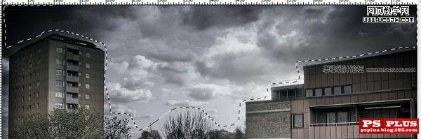 1、我們用套索簡單的把天空部分選出來。這一步不用太仔細。我選的就很粗。并且也沒有羽化。