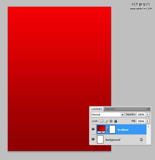 首先,創(chuàng)建一個新的photoshop文檔,800像素乘以1120像素,70dpi,顏色模式為rgb;然后創(chuàng)建一個新的漸變填充圖層,命名為“gradient”,我使用的顏色是: #f20000 - #8e0000 ,大家可以隨意變換自己想要的顏色。