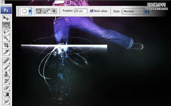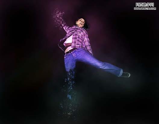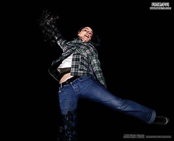 6、上一步已經(jīng)將腿分離成片狀了,但是,碎片并沒有像真實(shí)的火光四溢效果那樣散播開來。因此,為了得到那種效果,我們將用到仿制圖章工具。