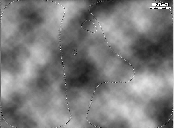 8、在其他兩個(gè)圖層上方新建一個(gè)圖層。將前景色設(shè)置成白色,背景色設(shè)置成黑色。然后到濾鏡>渲染>云彩。然后選擇套索工具。設(shè)置羽化為20px,然后選擇女孩周圍的一塊區(qū)域。你需要下圖所示的一個(gè)選區(qū)。緊接著,到圖層>圖層蒙版>顯示選區(qū)。