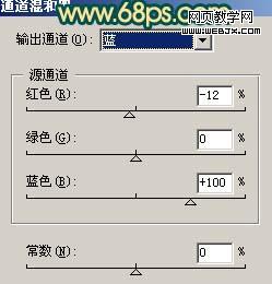 1、打開原圖素材,創(chuàng)建通道混合器調(diào)整圖層,對(duì)藍(lán)色進(jìn)行調(diào)整,參數(shù)設(shè)置如圖1,效果如圖2。