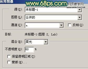 8、新建一個(gè)圖層,按ctrl + alt + shift + e 蓋印圖層。選擇菜單:圖像 > 模式 > lab顏色,選擇不合拼。確定后執(zhí)行:圖像 > 應(yīng)用圖像,參數(shù)設(shè)置如圖18,效果如圖19。然后再選擇菜單:圖像 > 模式 > rgb顏色。