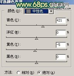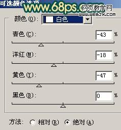2、創(chuàng)建可選顏色調(diào)整圖層,參數(shù)設(shè)置如圖3-5,效果如圖6。