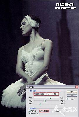 4、調(diào)整圖片色彩。使用“色彩平衡”命令對(duì)圖像的整體色彩進(jìn)行調(diào)整。調(diào)整參數(shù)如圖6所示。最終效果如效果圖所示。