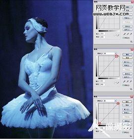 1、調(diào)整原片的曝光及色調(diào)。原片有些灰,打開曲線面板,分別對(duì)紅、綠、藍(lán)三個(gè)通道進(jìn)行調(diào)整,從而改變照片的曝光及色調(diào)。調(diào)整參數(shù)及效果如圖1所示。
