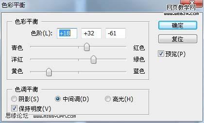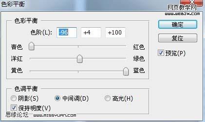 使用套索工具選中眼珠部分,建立色彩平衡調(diào)整層參數(shù)如圖: