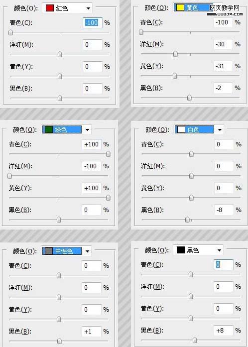 4、新建一個(gè)圖層,蓋印圖層得到圖層3,建立可選顏色調(diào)整層,參數(shù)如圖: