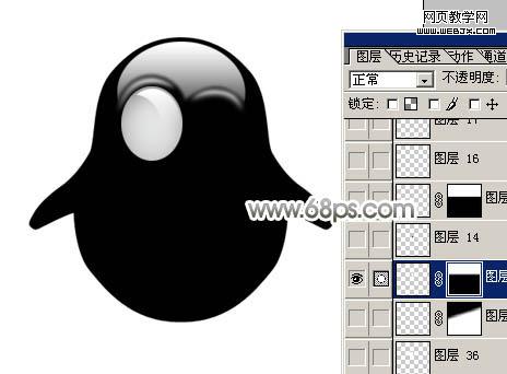 8、調出眼珠的選區,執行:選擇 > 修改 > 收縮,數值為2,確定后新建一個圖層填充白色。然后把選區向左下移動一點,如圖11,按delete 刪除。取消選區后加上圖層蒙版,用黑白線性漸變拉出下部透明度效果,如圖12。