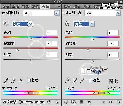 6.建立一個“色相飽和度”調整圖層,參數如下圖七,效果為圖七a。