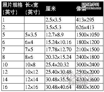 b 常用照片尺寸參考表