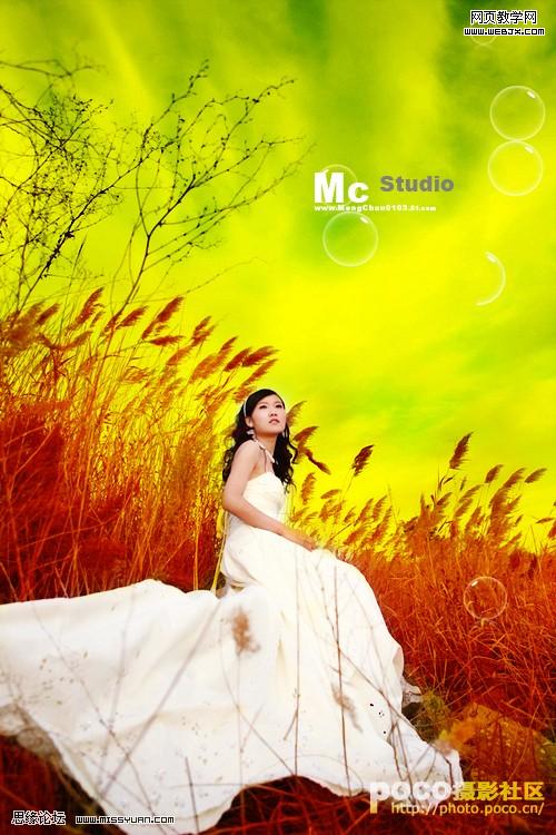 2.新建一個“色彩平衡”調整圖層,設置如下,只需保留蘆葦顏色,過渡方面,就要注意畫筆的不透明度。記得把原圖,放大到幾百倍,手工不好的人,想做細致就得這樣。如何擦拭,我就愛莫能助。寫這些,希望你能喜歡。效果如2: