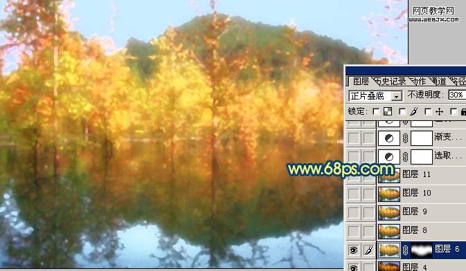 8、新建一個圖層,蓋印圖層,圖層混合模式改為“柔光”,圖層不透明度改為:30%,效果如下圖。