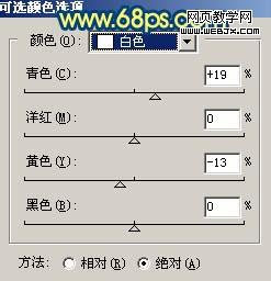 10、創建可選顏色調整圖層,對白色進行調整,參數設置如圖17,確定后把圖層不透明度改為:10%,效果如圖18。