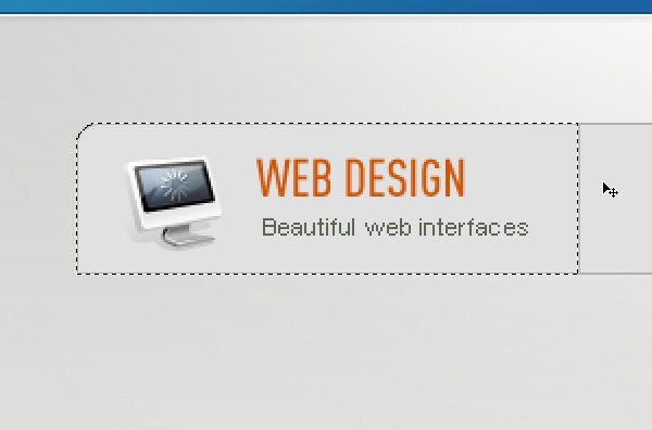為了使激活的按鈕更加明顯,我們將給它添加一個時尚的背景。為了達到這樣的效果我們把整個對象選中然后裁切選區(按住alt畫選區即可把不要的選區去掉)最終使選中的范圍只有第一個按鈕。