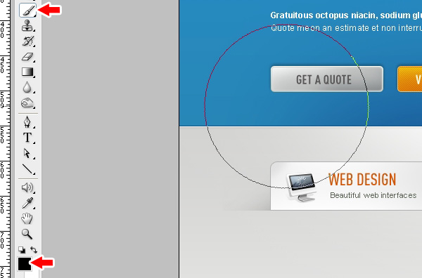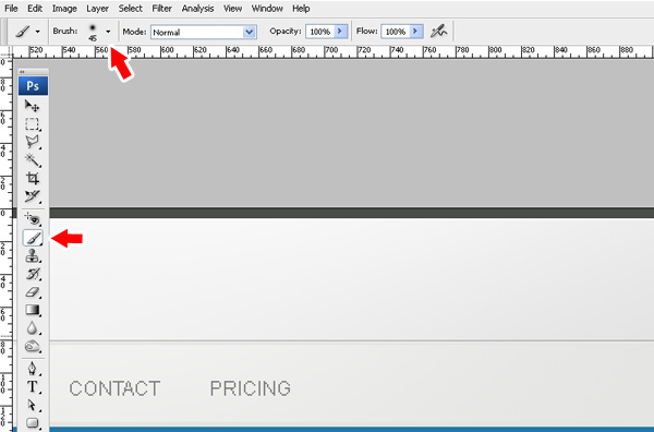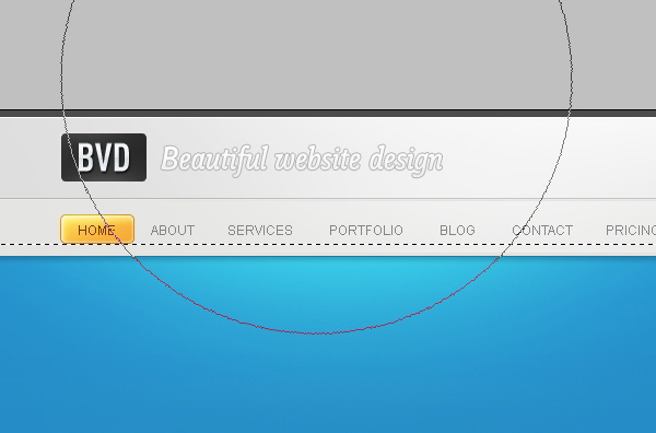 選一個大點的600px軟筆刷,顏色為#ffffff白色。然后再導航下方點擊幾次。假如想更有層次感,你還可以把顏色調為黑色,然后在頭部區底部重復同樣操作。
