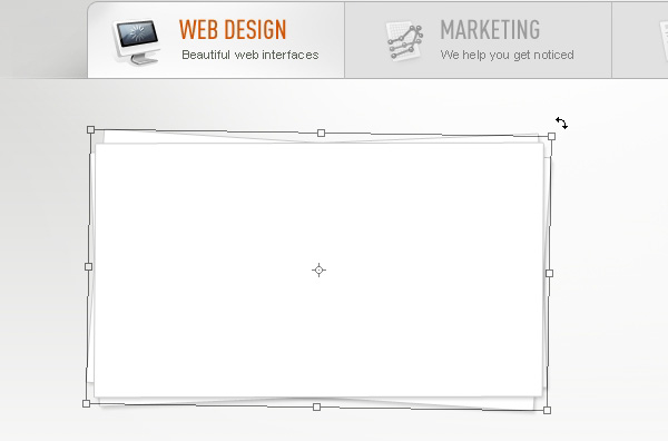 現在開始設計第一個切換按鈕的內容。我們需要一個精準設計的圖像(有好看的標題和一些文字內容)。首先我們得創建這個精準的圖片。這里我認為我們最好打破這個圖片尖銳的棱角設計,從而創造一個多彩的效果。因此我現在畫一個白色有1像素灰色邊框的長方形,再給它加上細微的陰影效果。
