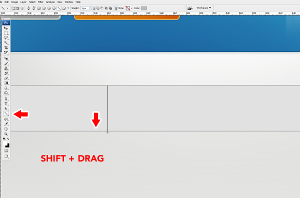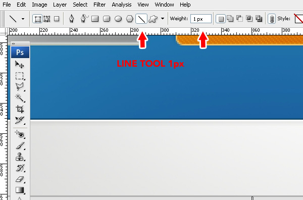 下來,如圖所示,在區域上方畫一個10像素高的長方形,并且通過在頂端和底部各多加兩條線增強細節處理。