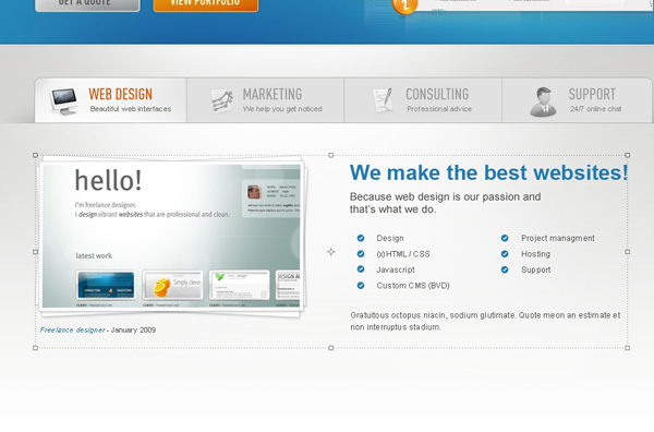 我希望你喜歡本教程并且從中或多或少學到點知識。現在是你創作的時候了。記住,只要你注重于細節,你就會創造出漂亮的網頁設計,盡管你photoshop只會那么兩三個工具。現在你有設計的沖動沒?