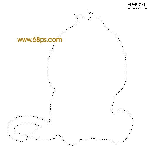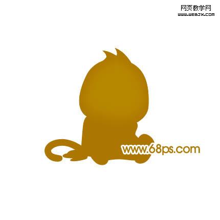 1、新建一個(gè)600 * 600像素的文件,背景填充白色。新建一個(gè)圖層,用鋼筆勾出猴子的輪廓,轉(zhuǎn)為選區(qū)如圖1,然后填充顏色:#ac7700,效果如圖2。